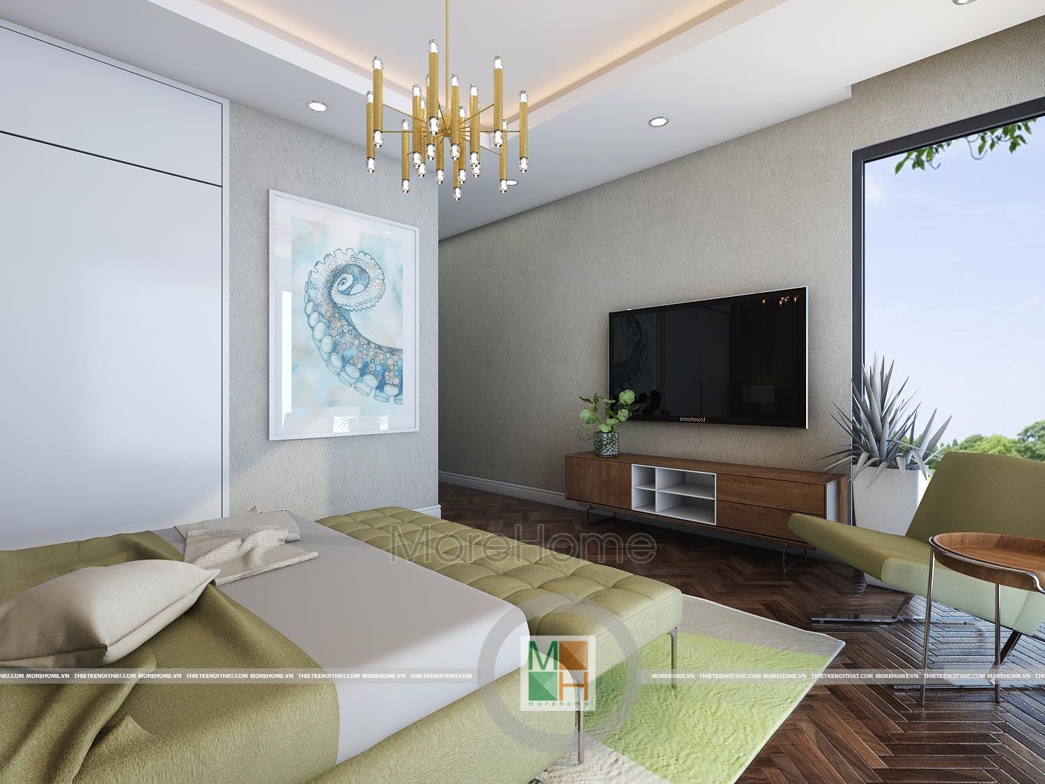 Phòng ngủ cuối cùng được trang trí với tone màu xanh lá trẻ trung năng động
