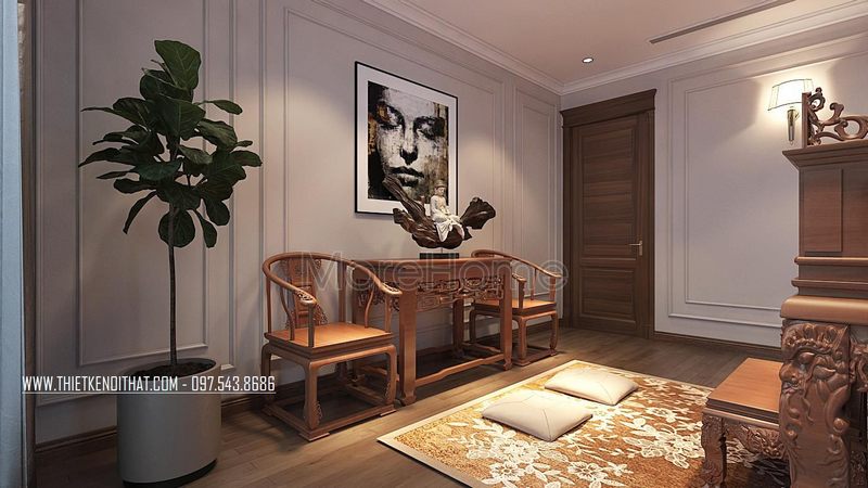 Thiết kế nội thất cho biệt thự với chất liệu gỗ cao cấp theo phong cách tân cổ điển.