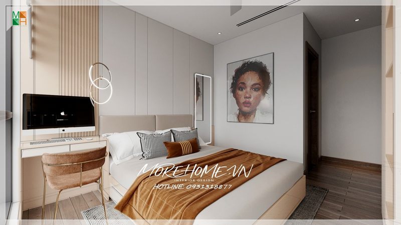 . Mẫu thiết kế phòng ngủ dành cho các căn hộ, nhà phố, biệt thự có diện tích lớn được trang bị nội thất bằng gỗ công nghiệp sơn trắng theo phong cách tân cổ điển, tạo nên một vẻ đẹp sang trọng và quyến rũ cho căn phòng.