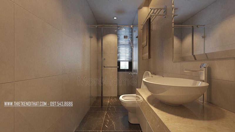 Trang trí phòng tắm nhỏ đẹp, nhà vệ sinh đơn giản với tông màu sáng thông thoáng hiện đại, góp phần mang lại sự tiện nghi cho gia chủ.