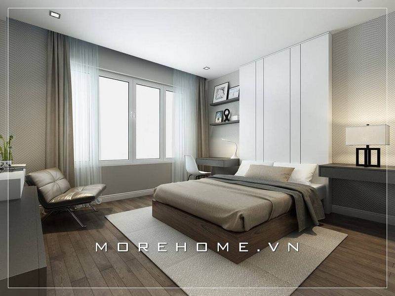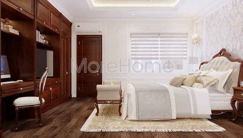 Hệ thống tủ gỗ được thiết kế với kiến trúc âm tường giúp tối ưu hóa sử dụng không gian trong phòng ngủ của bạn.